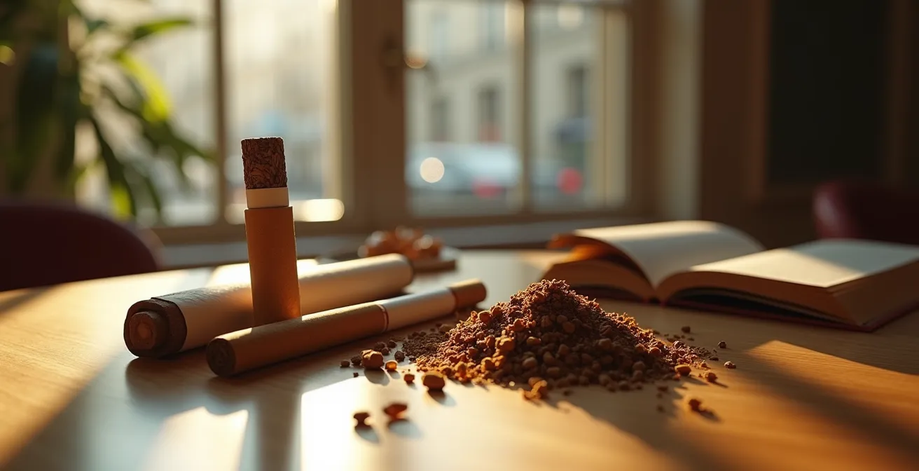 Le choix n’est donc pas universel. Si vous êtes sujet à l’irritation, un tabac blond, idéalement sans additifs, sera statistiquement plus confortable. Cependant, un fumeur habitué au tabac brun pourrait trouver un blond « fade » et sans satisfaction. La meilleure approche est empirique : tester différentes variétés en petits conditionnements. Il est également crucial d’adapter le papier : un papier fin non blanchi peut adoucir l’expérience d’un tabac brun, tandis qu’une bonne humidité (autour de 13%) réduira l’âpreté de n’importe quel tabac. L’objectif est de trouver le couple tabac/papier qui minimise l’inconfort et donc la tentation de « tirer » plus fort, ce qui augmente l’inhalation de produits de combustion nocifs.